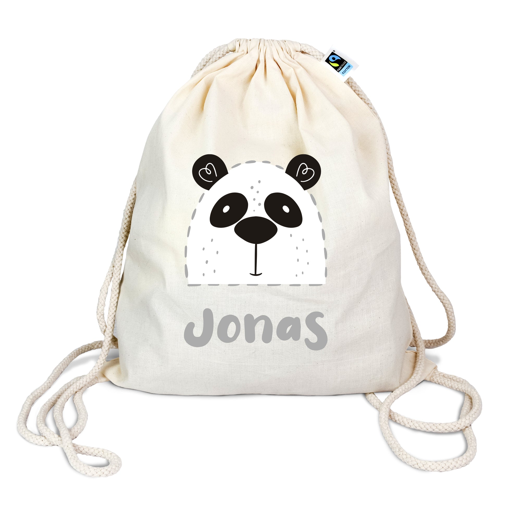 Turnbeutel aus Bio-Baumwolle mit Name | Panda