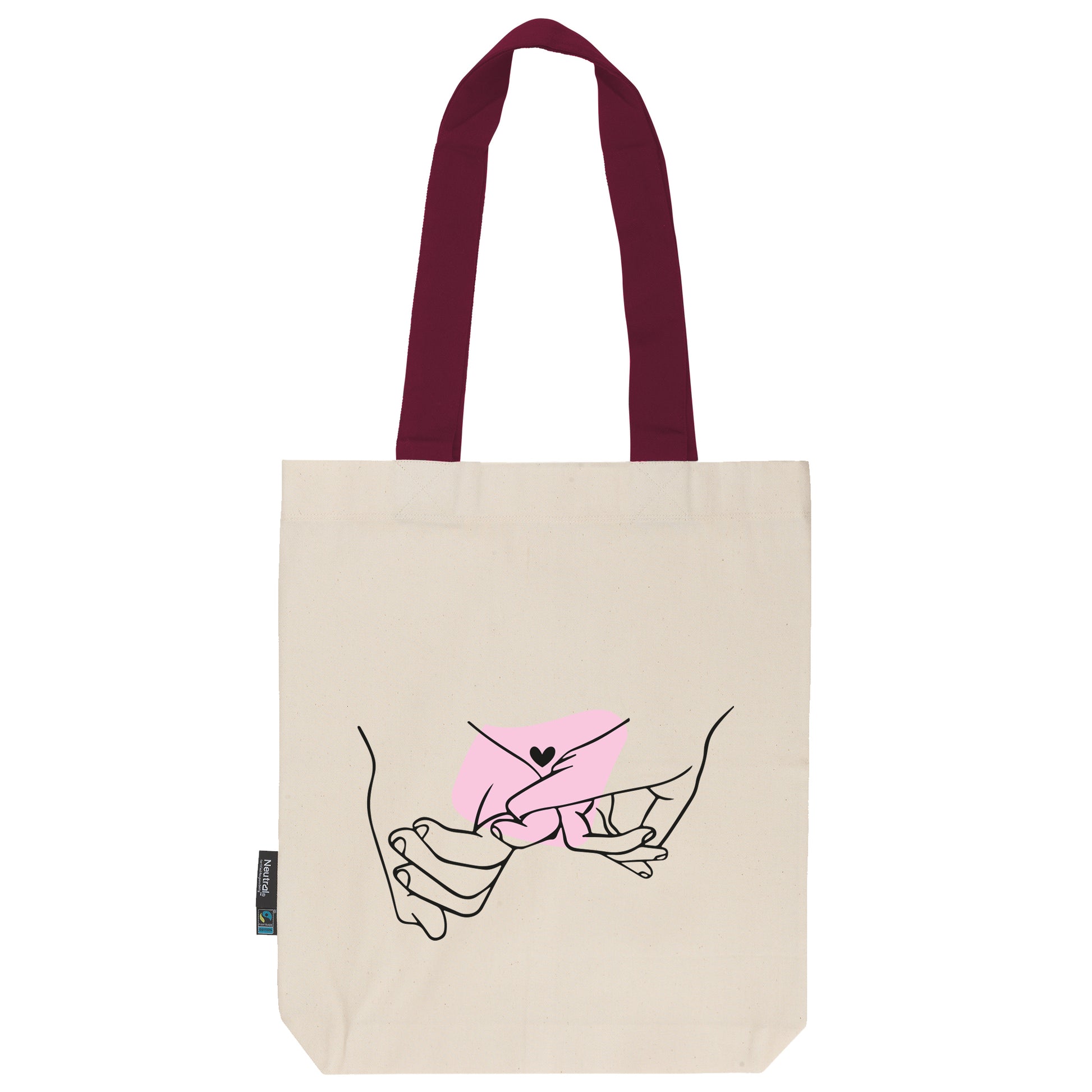 Unsere Stofftasche „Verbunden“ steht für Zusammenhalt und Achtsamkeit – ein minimalistisches Line-Art Design mit feinem rosa Akzent und einem kleinen Herz als Zeichen der Zuneigung.